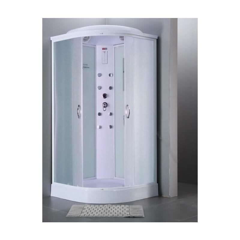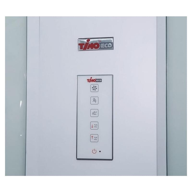 Душевая кабина Eco финского производителя Timo привлекает стильным современным дизайном и длительным сроком бесперебойной эксплуатации. Поддон на усиленном металлическом каркасе выдерживает высокую нагрузку и отличается прочностью. Поверхность не скользкая и обладает антибактериальными свойствами. Закаленное рифленое стекло покрыто водоотталкивающим составом, поэтому капли стекают с него, не оставляя пятен и разводов. Благоприятный микроклимат создаст вентиляция. Модель оборудована латунным смесителем, тропическим душем и ручной лейкой, а также восемью гидромассажными форсунками. Уровень комфорта повышают зеркало, стеклянная полочка для принадлежностей и радио.
