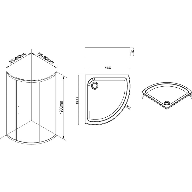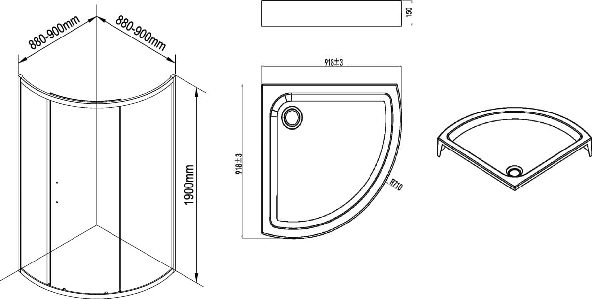 - Радиус поддона