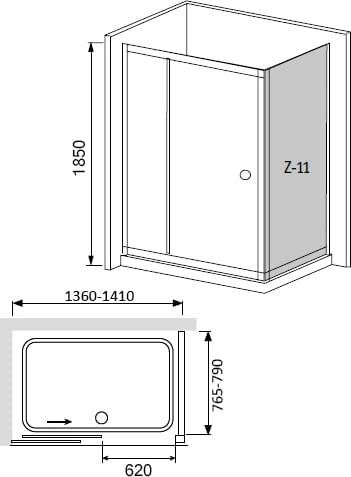 - Ширина душевой двери регулируется от 136 до 141 см, ширина боковой стенки - от 76,5 до 79 см