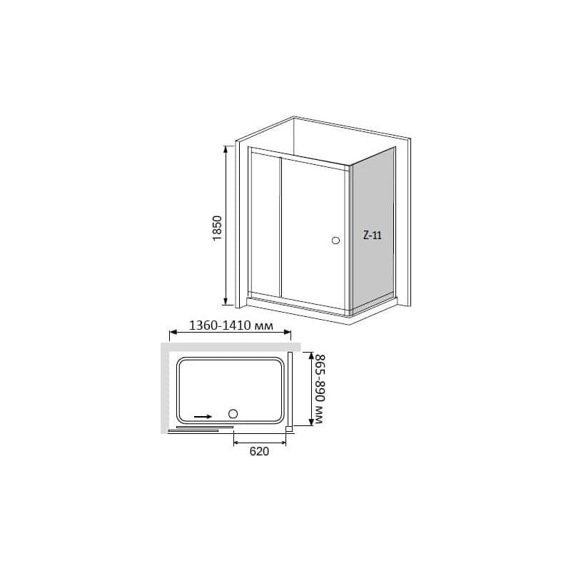- Ширина душевой двери регулируется от 136 до 141 см, ширина боковой стенки - от 86,5 до 89 см