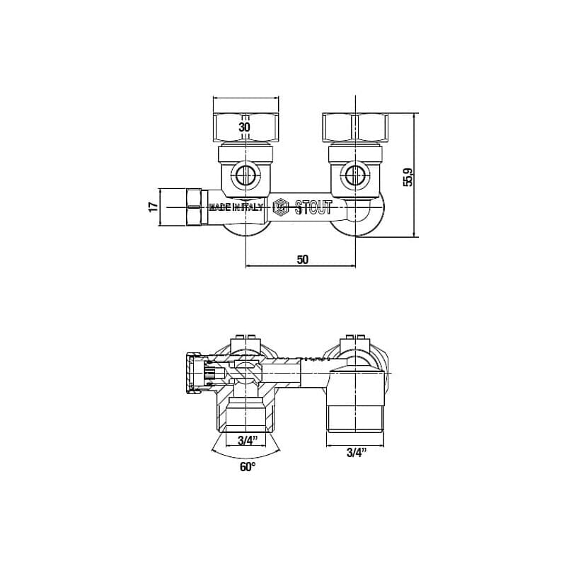 Узел нижнего подключения Stout SVH 0003 3/4", угловой SVH 0003 000020