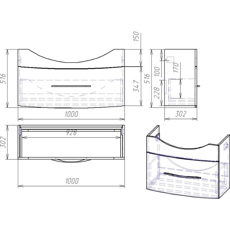 - Габариты (шгв): 100x30.2x51.6 см