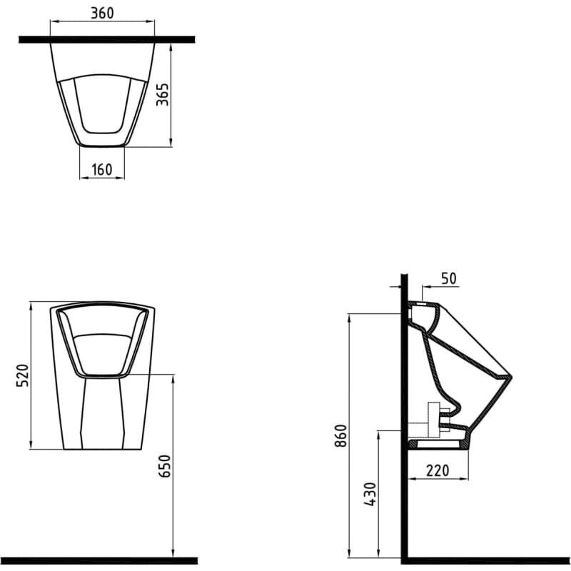 Писсуар Bien Neptun NPPS05201VSUW5000 подвесной, с внешним подводом воды — 1 шт- Писсуар 1 шт.