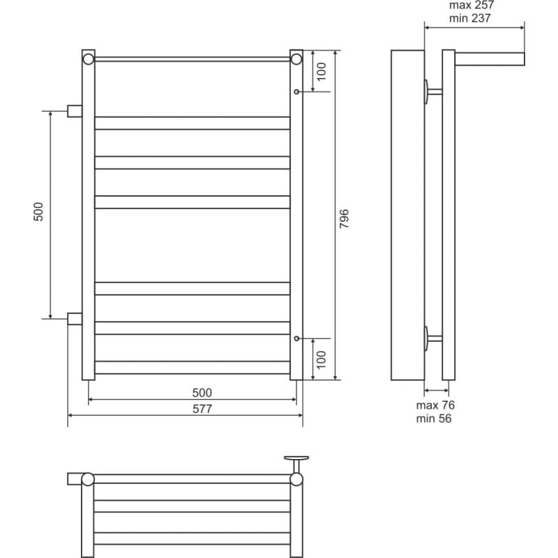 Полотенцесушитель водяной Terminus Хендрикс П7 500x796 с боковым подключением 500 слева — 1 шт- Полотенцесушитель 1 шт.