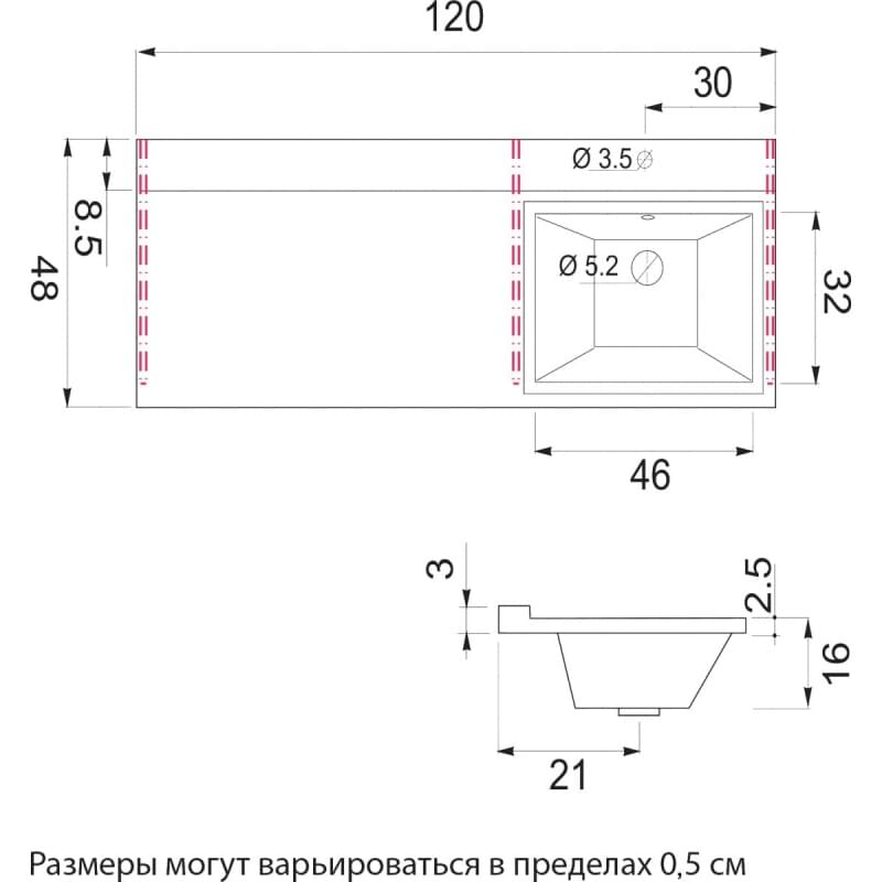 Раковина «Персона 120 R» российской фабрики сантехники «Цвет и Стиль» допускает несколько вариантов установки. Благодаря наличию столешницы эта модель отлично подходит для подвешивания над стиральной машиной глубиной 45 см. Литьевой мрамор, используемый при изготовлении, прочнее обычного в 4 раза. Он отличается хорошим шумопоглощением и приятной поверхностью. Высочайшее качество материала увеличивает срок службы изделия до 45 лет. Покрытие защитным слоем – гелькоутом – делает модель более устойчивой к механическим повреждениям. Сохранить поверхность в идеальном состоянии поможет правильный уход, а случайные царапины и сколы легко поддаются косметическому ремонту в домашних условиях.Комплектация