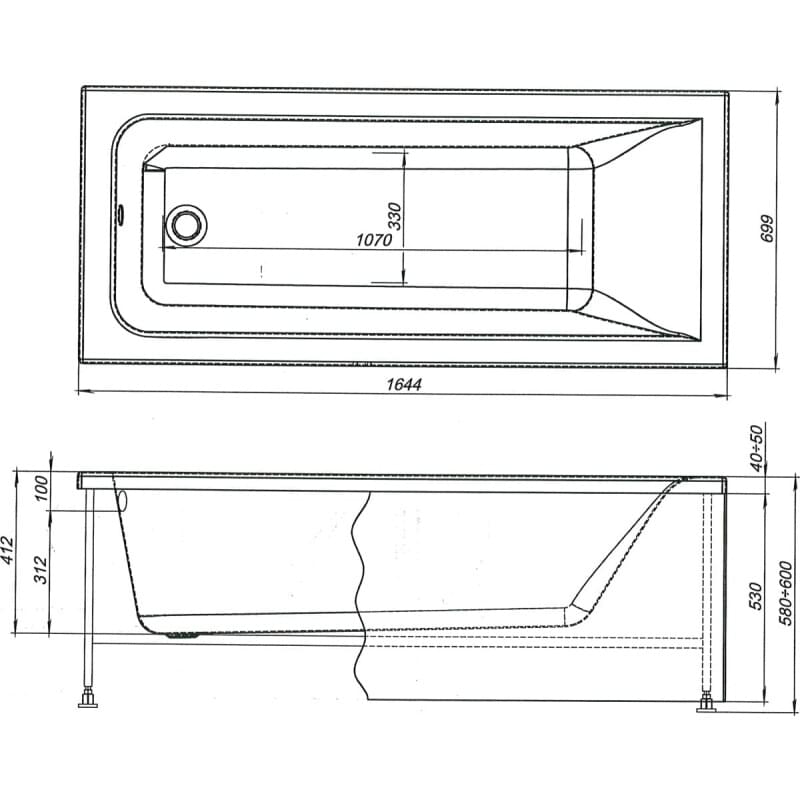 Акриловая ванна Aquanet Bright 165x70 с каркасом + штора 230255