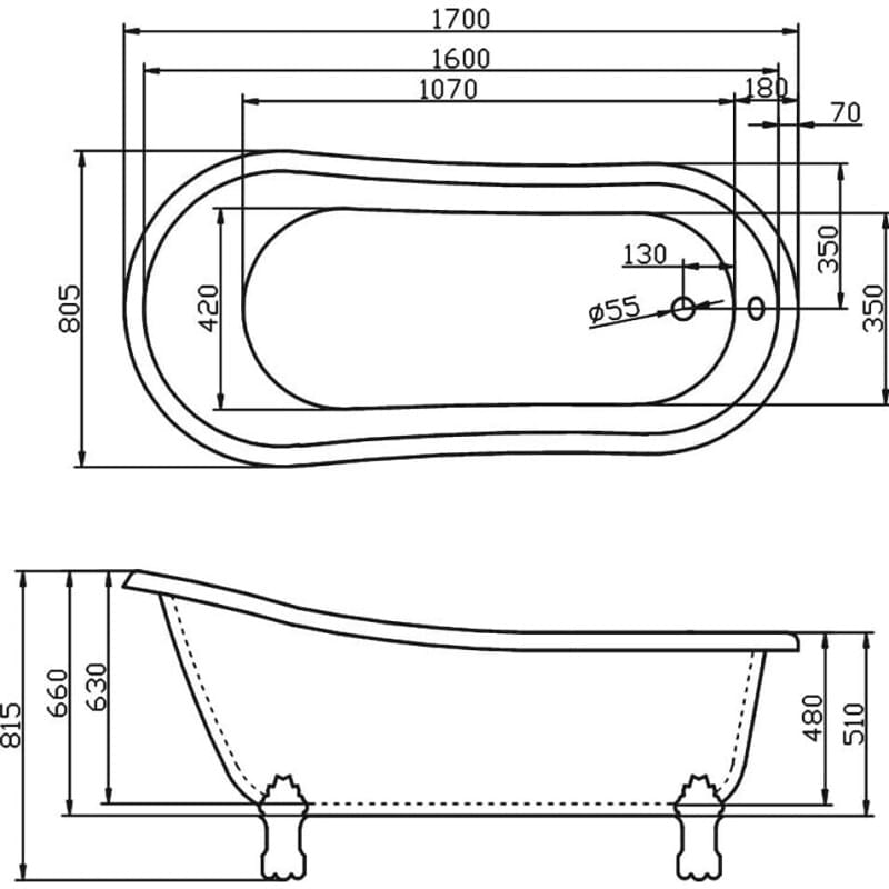 Акриловая ванна BelBagno BB04 170x80 — 1 шт- Акриловая ванна 1 шт.