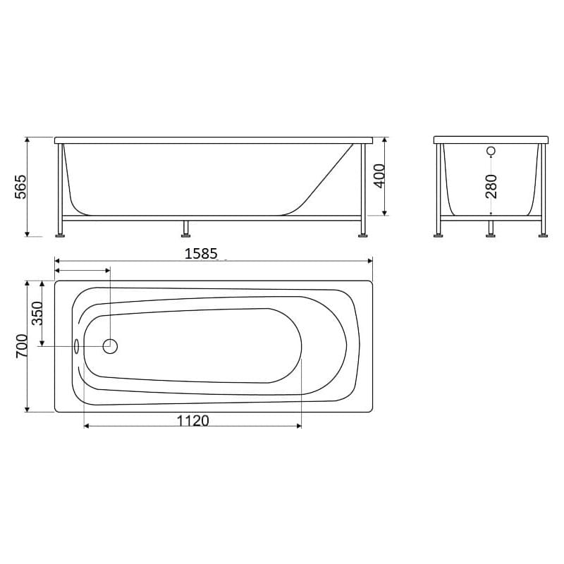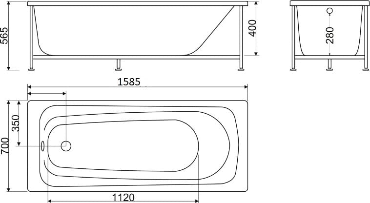 - Диаметр слива ванны
