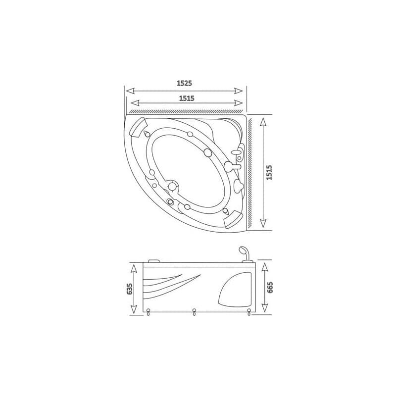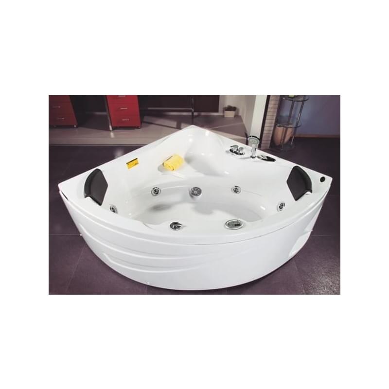 Удобная и вместительная угловая акриловая ванна с гидромассажем Appollo SU-1515, оборудованная тремя спинками, две из которых укомплектованы подголовниками, создаст неповторимый комфорт во время приёма водных процедур. Выполненный в форме четверть круга, корпус изделия, имеет эффектную полукруглую внешнюю панель с полочкой для хранения косметических средств, конструкция которой усилена прочным металлическим каркасом. На бортике ванны установлены каскадный смеситель с выдвижной душевой лейкой и пульт управления упрощённого типа "ON/OFF".